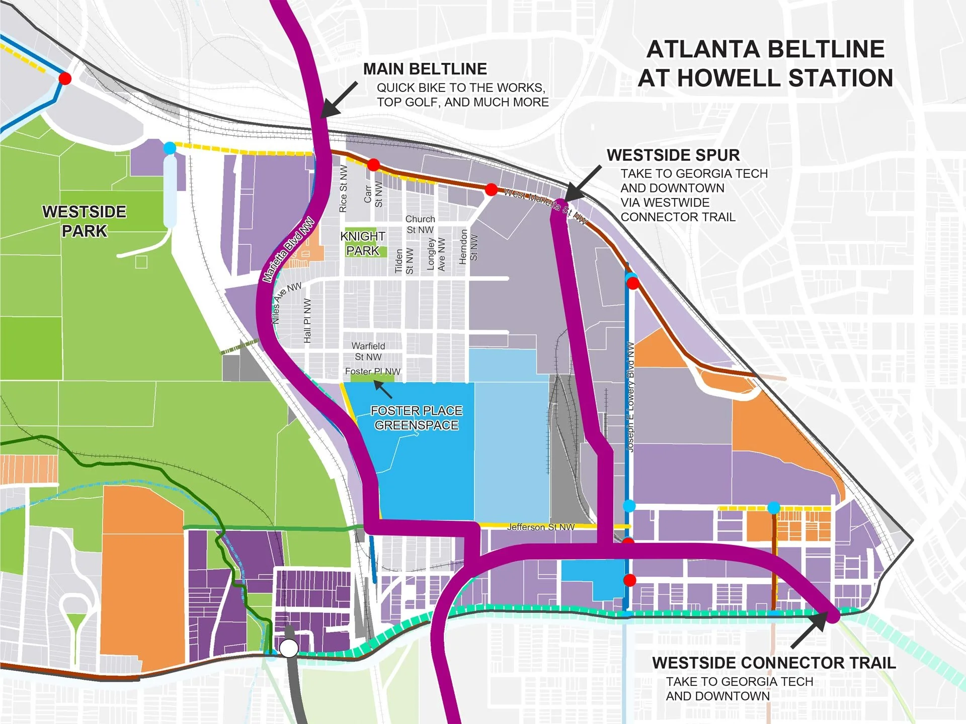 Howell Station is nestled just inside a completed section of the Beltline and also is bordered by two completed Beltline spurs