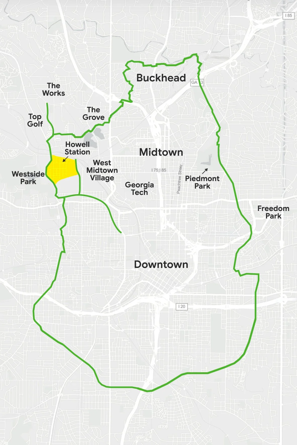 Howell Station is located in the heart of West Midtown and is surrounded by entertainment venues, shops, restaurants, and greenspace